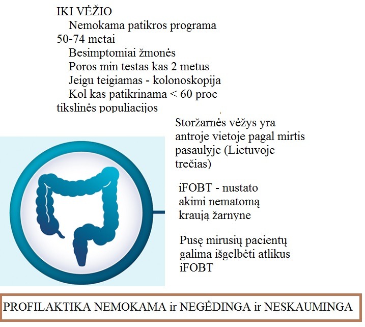 - Storžarnės vėžys yra vienas iš vėžių, kuriuos nustačius ankstyvose stadijose GALIMA pasveikti. Jeigu neturite skundų, esate tarp 50-74 kviečių atlikti visiškai neskausmingą slapto kraujo tyrimą. Esant jam teigiamam – rekomenduosime visą žarnyno ištyrimą – fibrokolonoskopiją.